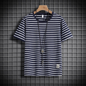 2022夏季新款条纹加大码短袖纯棉T恤男潮牌宽松胖...