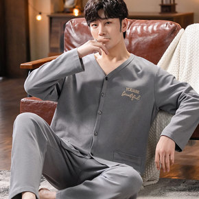 龙阁堡春秋睡衣含棉男士长袖大码开衫男中老年加肥家居...
