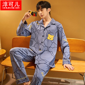 睡衣男士春秋款秋季纯棉长袖家居服秋冬款全棉男式中年...