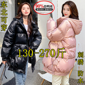 胖妈妈羽绒棉衣服中长款过膝加肥大码200斤中老年女...