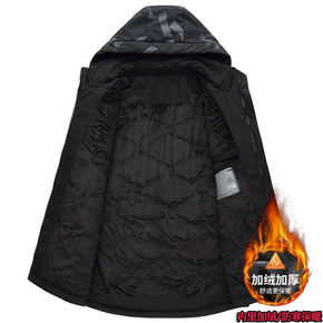 男士连帽棉服2021新款冬季加厚外套中长款棉衣中青...