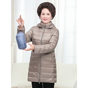 中老年人羽绒服女士中长款妈妈装加厚加大白鸭绒奶奶冬...