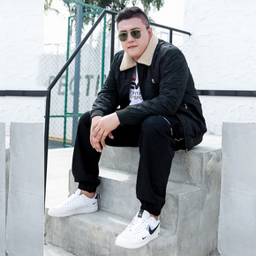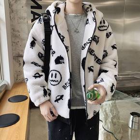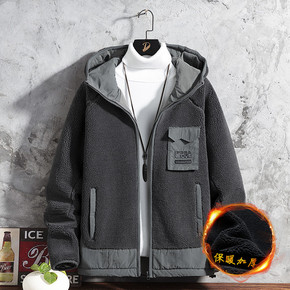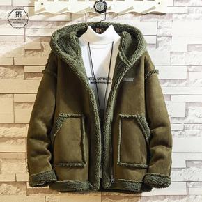 羊羔绒连帽外套男士冬季加厚痞帅港风潮牌ins宽松加...