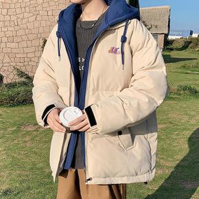 韩版假两件棉衣棉服袄男加肥加大码宽松潮胖子连帽外套...
