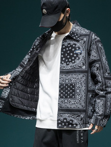 2021年冬季新款男青年加肥加大码时尚休闲立领印花...
