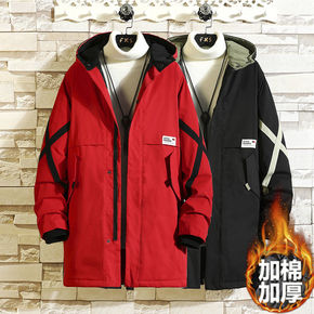 冬季外套加厚羊羔毛棉袄男加大码宽松连帽棉服男潮牌皮...