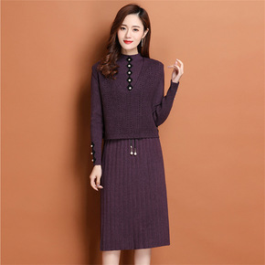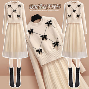 两件套针织连衣裙女春秋冬2022年新款温柔系毛衣裙...