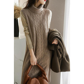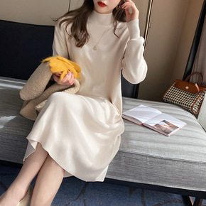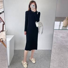 毛衣裙中长款女冬季打底2021年新款小个子内搭半高...