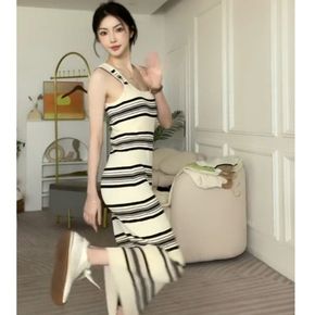 2022早春新款条纹针织连衣裙女温柔风吊带长裙休闲...