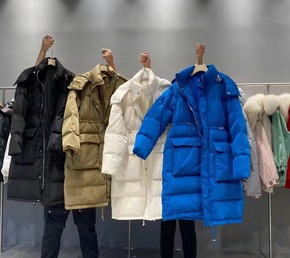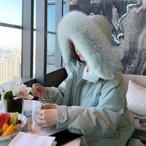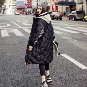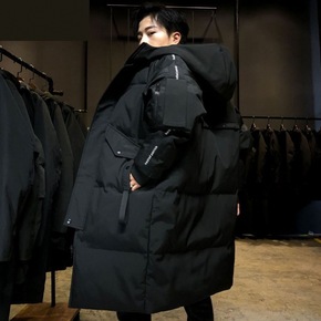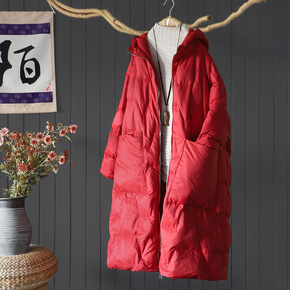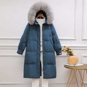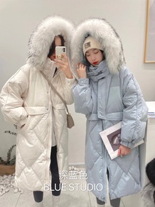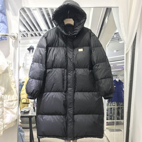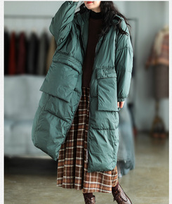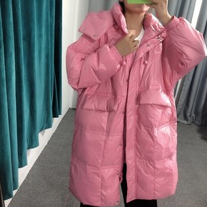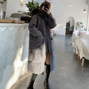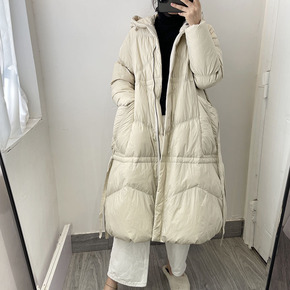 冬季新款90%白鸭绒连帽大口袋羽绒服 百搭宽松过膝...