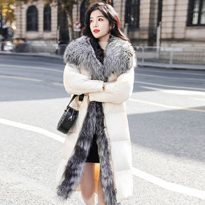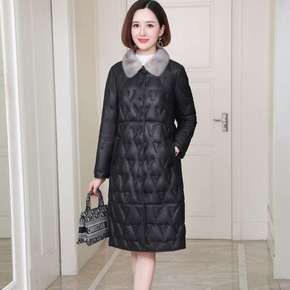 反季海宁绵羊皮羽绒服女中长款2021冬季白鸭绒过膝...