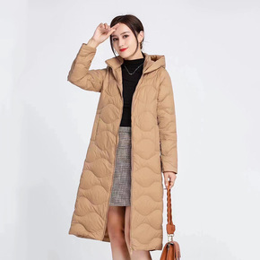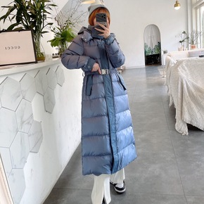 2021冬季新品韩版时尚百搭连帽羽绒服女长款过膝保...