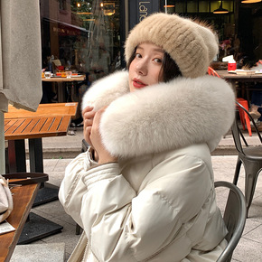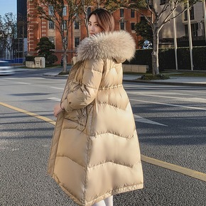 韩版超大毛领香槟色轻奢羽绒服女中长款过膝收腰保暖显...