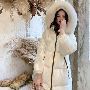 羽绒服女2021冬新款中长款过膝加厚连帽修身收腰白...