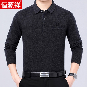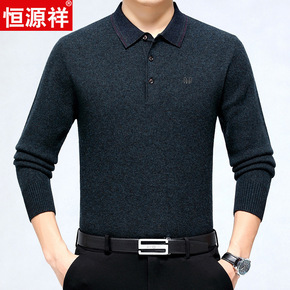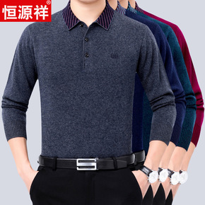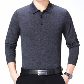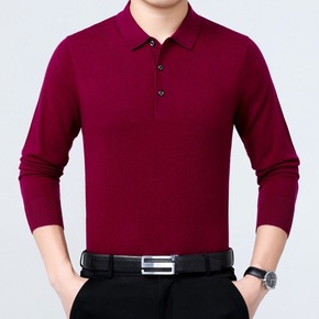中年秋季新款长袖T恤男士羊绒打底衫爸爸翻领休闲针织...