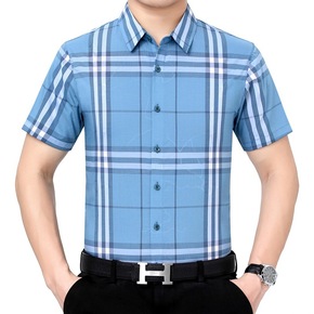 2022夏季条纹短袖衬衫男中老年时尚商务桑蚕丝免烫...