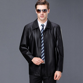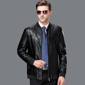 海宁真皮皮衣男士秋冬季中年绵羊皮薄款外套加绒加厚爸...