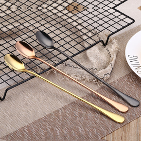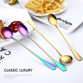 1010不锈钢镀钛金长柄勺咖啡冰饮搅拌勺子加厚尖勺...