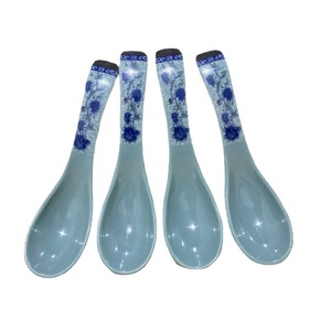 7006青花瓷勺仿瓷勺 饭店吃饭勺 早餐密胺勺带钩...