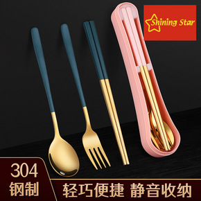 304筷子勺子套装旅行便携不锈钢餐具三件套学生便携...