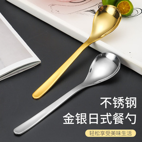 不锈钢勺子冰勺镀金长柄调料勺搅拌冰圆勺蜂蜜韩式冰尖...