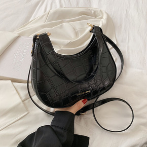 斜挎包女式2021新款鳄鱼纹时尚女包半圆马鞍包百搭...