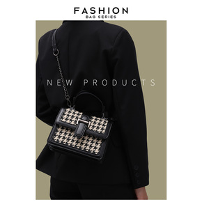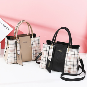 手提包女2020新款气质韩版百搭格子单肩斜挎包女包...