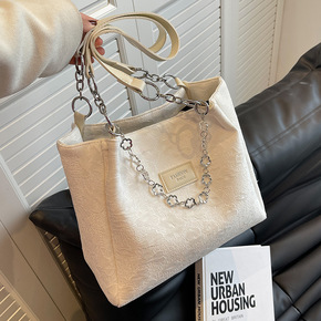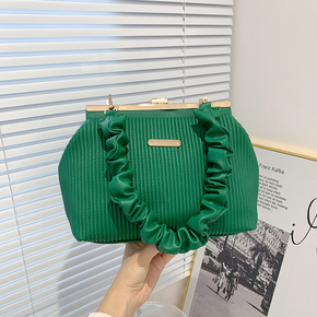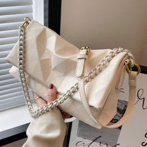 外贸时尚包包女2022新款皱褶手提包高级感链条包百...