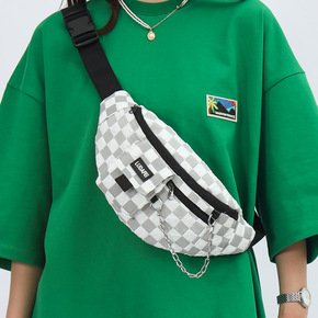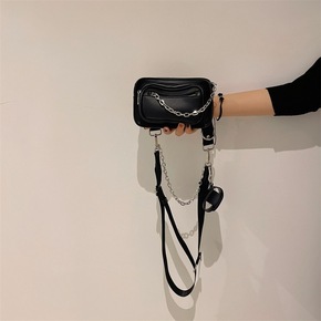 潮酷机车包链条女士学生机能风斜挎包2021年新款时...