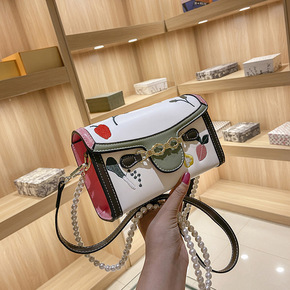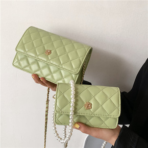 网红口红包女包2021新款韩版珍珠链零钱手机包潮时...