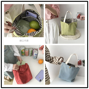 日韩chic百搭小包包手拎化妆包灯芯绒便当袋小手提...