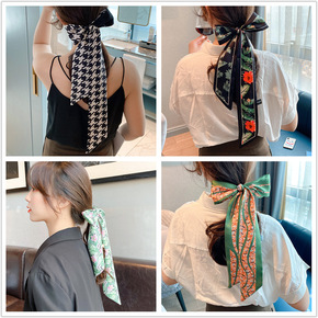 法式发带chic时髦花草丝巾窄细小长条复古twil...