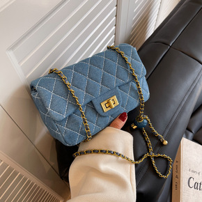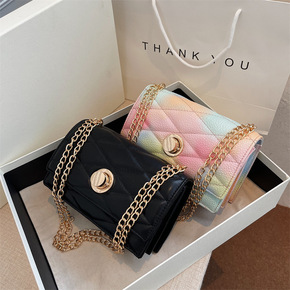 2022新款潮春季韩版时尚小包包菱格链条包休闲单肩...
