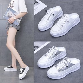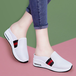 网红半拖包头小白鞋女网面透气夏季厚底凉拖中跟百搭韩...