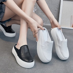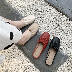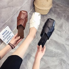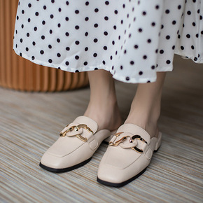 包头半拖鞋女外穿2021新款软皮平底拖鞋女夏无后跟...