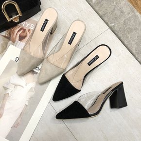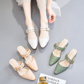 2021新款网红百搭半托单鞋中跟包头半拖鞋女夏外穿...