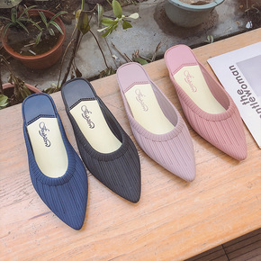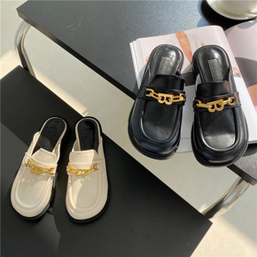 2020 春秋新款网红包头半拖鞋女低跟平底外穿in...