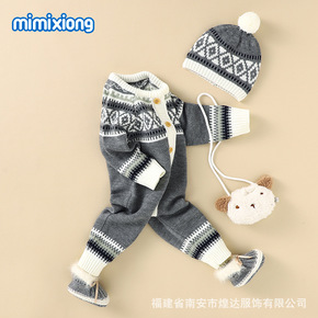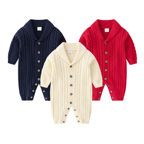 跨境秋冬新品宝宝针织哈衣 7037翻领麻花婴儿连体...