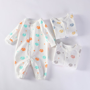 2022新款四季无骨婴儿连体衣纯棉提花新生儿闭档宝...