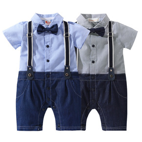 婴儿衣服秋新款长袖男宝宝哈衣绅士礼服新生儿连体衣爬...