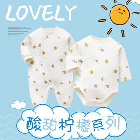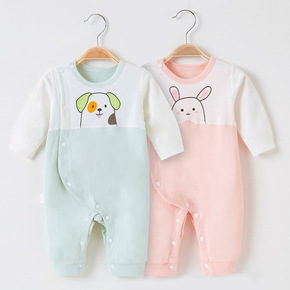 婴儿长袖连体衣服春秋装斜襟打底纯棉新生儿女宝宝初生...