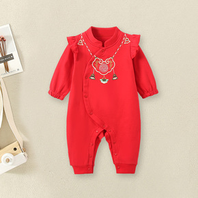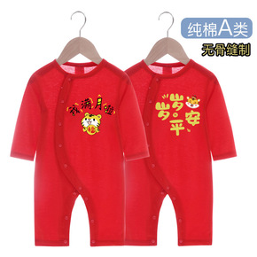 新生儿衣服秋冬季婴儿连体衣满月女宝宝周岁抓周礼服哈...