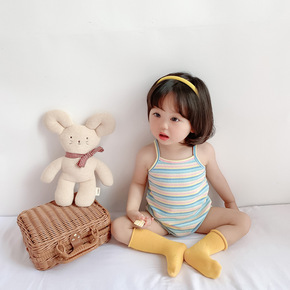 婴儿吊带夏季彩虹条纹新生儿外出爬服薄款夏男女宝宝三...