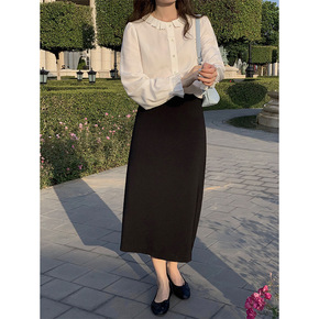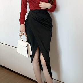 司南 高端法式针织半身裙女2020秋冬中长款言双纯...