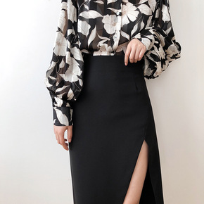 2022夏长款包臀半身裙女开叉高腰显瘦碎花雪纺A字...