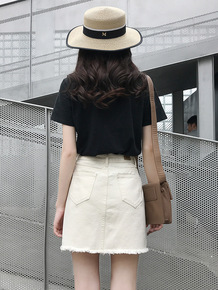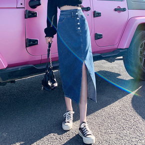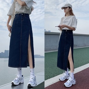 夏季新款防走光侧边开叉牛仔半身裙女高腰显瘦百搭a字...