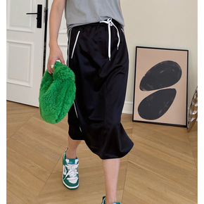 2022春秋女装针织螺纹侧抽绳弹力皱褶半身裙性感修...