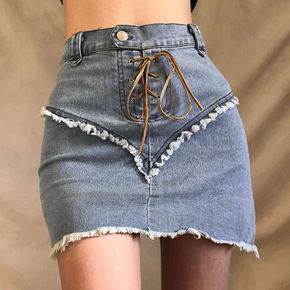 牛仔半身裙女式短裙2022新款韩版高腰亮片性感流苏...