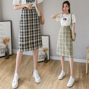 实拍现货视频+2022年春夏新款潮时尚格子中长款半...