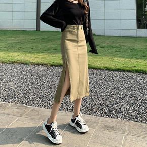 2022年春夏高腰牛仔半身裙女显瘦气质中长款百搭开...